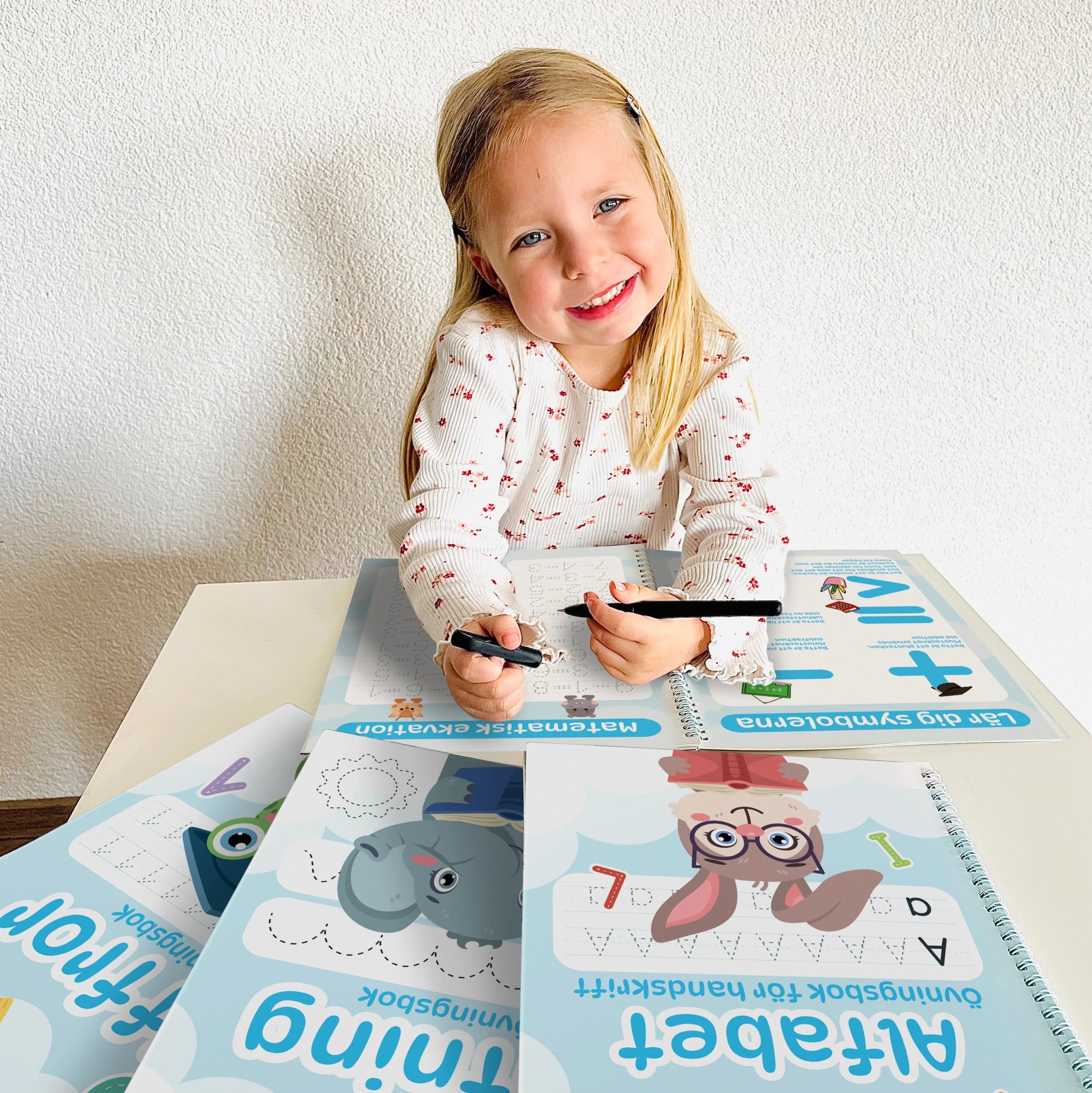 Harjoituspakkauksemme tekee kirjoittamisesta hauskaa, helppoa ja sellaista, mitä lapsesi todella odottaa innolla. Leikkisien harjoitusten, selkeiden askelten ja runsaan rohkaisun avulla rakennamme sekä käsialaa että itseluottamusta – yksi kirjain kerrallaan.